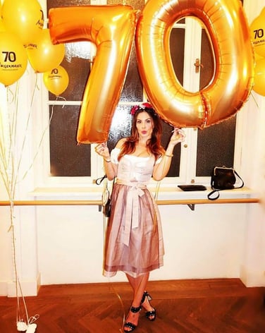 Ein Hoch auf 70 Jahre Angermaier Trachten! Bei der großen Feier war auch Dany herzlich eingeladen und feierte gemeinsam mit Angermaier-Boss Axel Munz das goldene Jubiläum. Auch die Stuttgarter Zeitung berichtete über das Event und lichtete die Herz-formende Dany für ihre Online Galerie ab (siehe unteres Bild).
